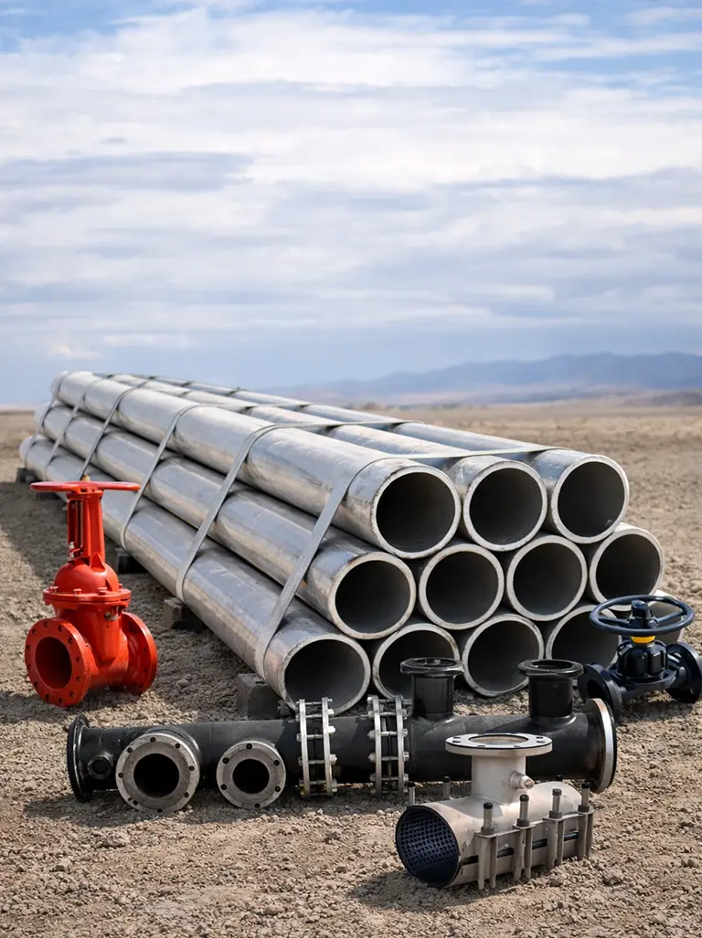 - Tuberías de acero, HDPE, PVC, PP y aleaciones especiales